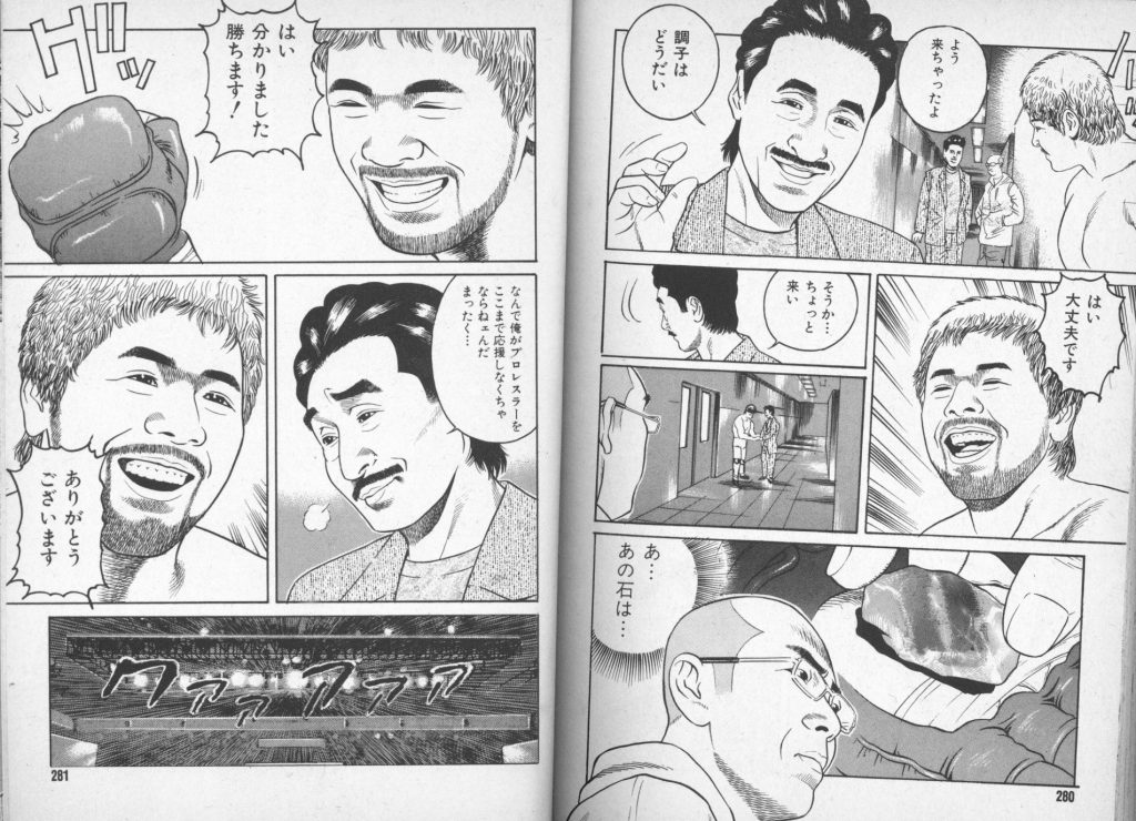 こういう感じで、かつてヒクソンにもらって大事にしていたというお守りの石を中邑に託す雀鬼。いい笑顔でそれを受け取り試合に臨む中邑。そして次のページ。