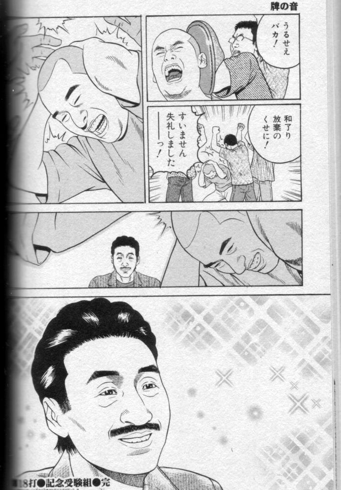 で、こんな末期『近代麻雀ゴールド』連載陣の中でもある種一番すごかったのが、原作:安田潤司+作画:中村毅士『牌の音』です。通常の単行本は出ていませんが、ペーパーバックのコンビニ版コミックで全2巻(サブタイが「20年間無敗の異次元闘牌」が1巻、「超感性の日々!!」が2巻)の単行本が出ております。『鬼ごっこ』とか『狂い咲き麻雀道!』とかは一切出ていないことを考えると扱いが良い。