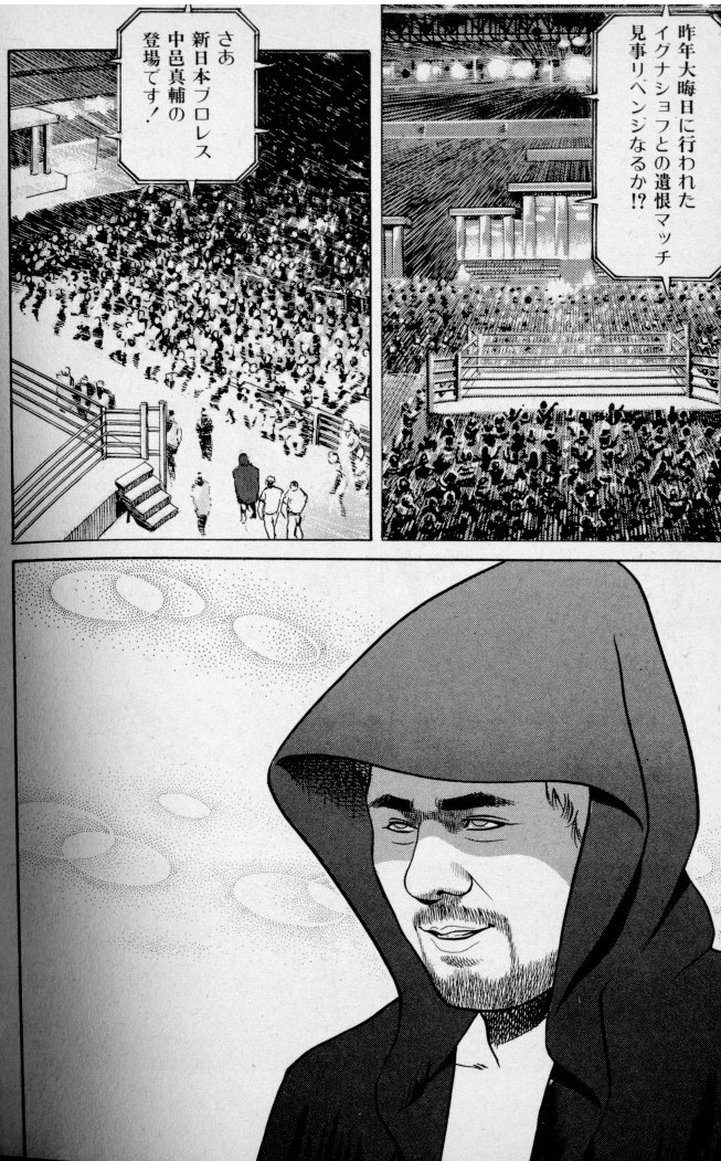 こういう感じで、かつてヒクソンにもらって大事にしていたというお守りの石を中邑に託す雀鬼。いい笑顔でそれを受け取り試合に臨む中邑。そして次のページ。