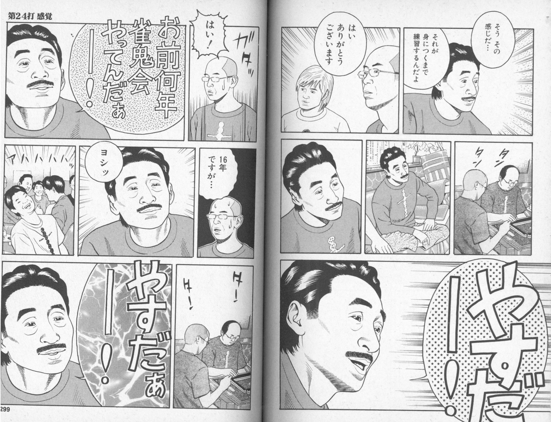 「やすだー!」「はい!」「お前何年雀鬼会やってんだぁー!」「16年ですが…」「ヨシッ」(アハハハハッ)ですよ。ウザ絡みみたいなの、確かに仲間内だとやけに面白くなってしまうことはあると思うんですが、こうやって漫画にしてお出しされても読者はかなり呆然とします。